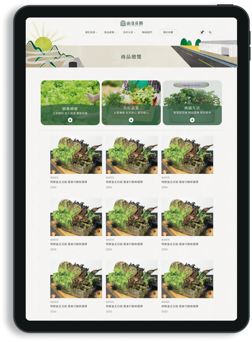 專為有機農場與智慧種植品牌設計,此版型以自然共生的生活美學為核心,融合園藝療癒與食農教育。清新溫暖的手繪插畫搭配高品質農產攝影,營造出寧靜舒壓的視覺氛圍,讓顧客在選購新鮮蔬果與科技植栽的同時,也能深刻感受到大自然的純淨力量與品牌對健康的堅持。